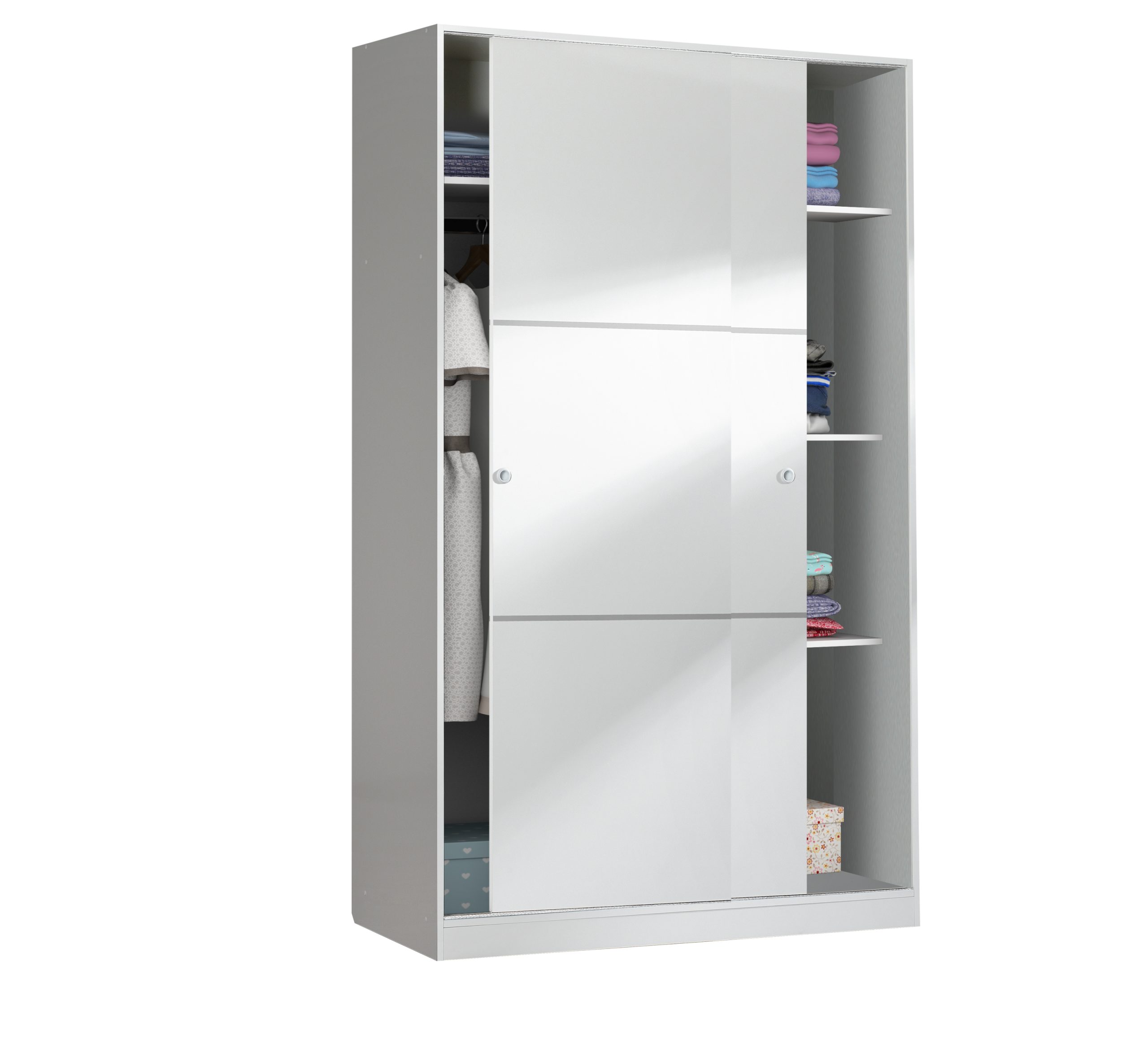 El Armario 2 Puertas Correderas Anchas FORES te ofrece calidad y estilo. Fabricado con tablero melaminado de muy alta calidad es resistente al nuance y polvo, además de ser fácil de limpiar. La funcionalidad de sus puertas correderas anchas, te permiten aprovechar al máximo el espacio disponible. Estas puertas tienen parachoques para suavidad y silencio al abrir y cerrar. El interior es práctico, con varios estantes y espacios de almacenamiento para guardar tus cosas. Su look moderno y sofisticado, sumado a su color blanco, lo transforman en una pieza ideal para tu hogar. Este Armario FORES 2 Puertas Correderas Anchas es versátil, práctico, resistente y además estéticamente hermoso, permitiéndote crear tus propios ambientes. Ideal para aquellos que buscan dar un toque refrescante a su hogar. ¡No lo pienses más y dale un aire moderno y sofisticado a tu hogar sin renunciar a la calidad y la funcionalidad! Medidas: 200x120x50 cm Color: Blanco.