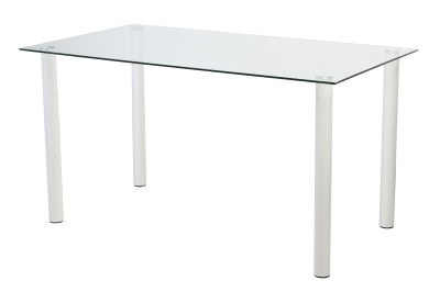 Mesa muy funcional que destaca por su diseño y su excelente precio. Posee una tapa fabricada en melamina de alta calidad con dos cristales decorativos, teniendo las patas fabricadas en DM. Está disponible en dos colores: en blanco y cambria con los cristales negros.