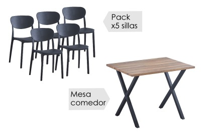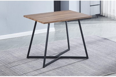 La mesa cuenta con un sobre de madera con biselado de 25 mm y diferentes acabados, para que puedas elegir el que más te gusta y el que mejor combine con tu salón o comedor. Además, las patas son metálicas en color negro e inclinadas hacia afuera formando parte de una robusta estructura.